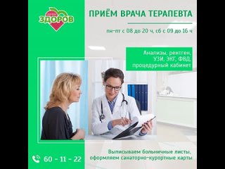 Запись на приём по тел. 60 -11- 22, с 08 до 20 часов ежедневно.