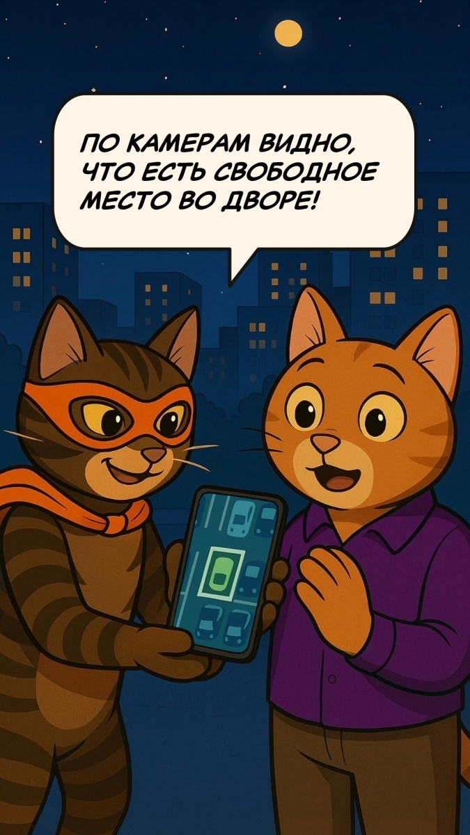 С услугой «Умный домофон + Умный двор» вы сможете открыть приложение «Goodline Город» и посмотреть по дворовой камере, есть ли свободные места в данный момент.