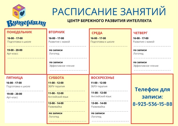 Для вашего удобства выкладываем расписание занятий нашего центра.