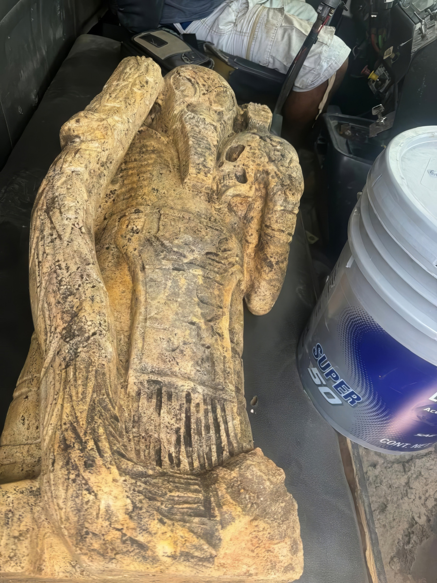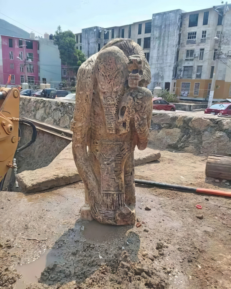 20 мая 2024 года в Службу 911 города Акапулько, Мексика, поступил звонок от дорожных рабочих, которые расчищали дренажный канал. Дело в том, что рабочие обнаружили в грязи на дне канала большую каменную статую с изображением странного существа с человеческим черепом в руке, у которого были большие миндалевидные глаза, как у инопланетян. Фото этой находки быстро попали в местные соцсети и тут же стали вирусными, а слухи о том, что нашли доказательство контактов древних индейцев с внеземными существами, стали плодиться как грибы после дождя.