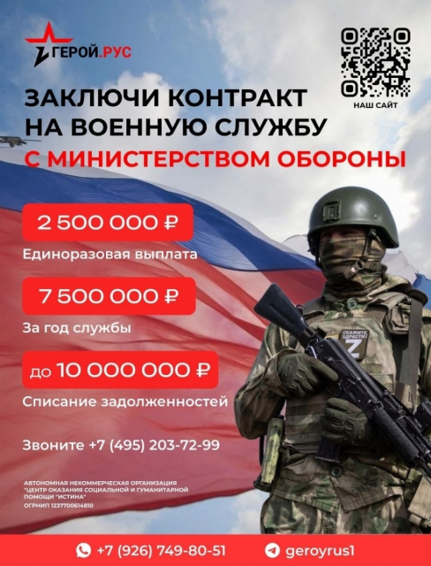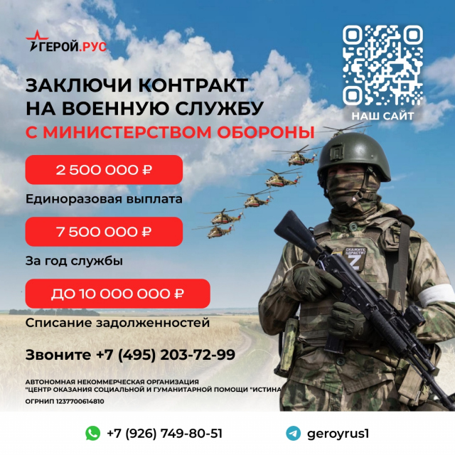 ✔Единоразовая выплата 2 500 000 руб. (по факту подписания контракта).