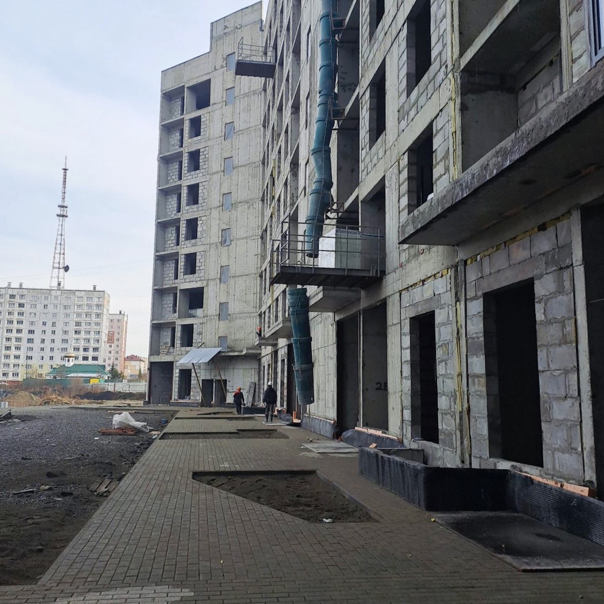 Завершена укладка тротуарной плитки по периметру дома: формируется первое благоустройство территории.