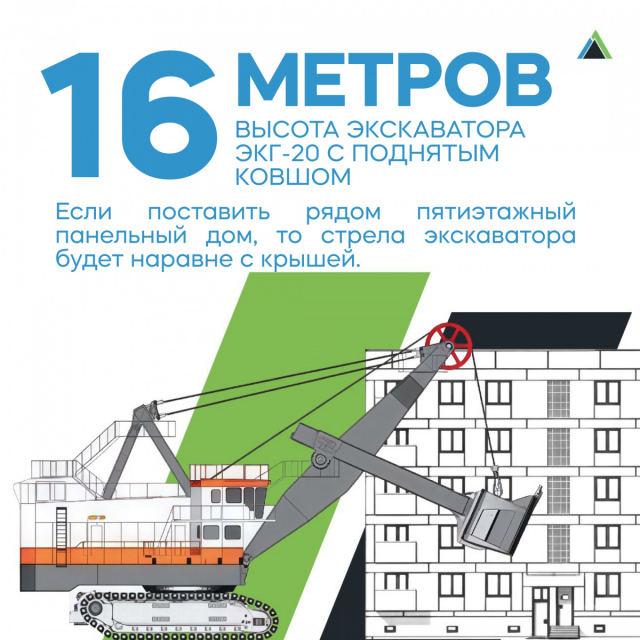 Электрический экскаватор – ещё один великан в мире карьерной техники. На разрезе «Междуречье» работает пять ЭКГ-20. А что, если рядом с такой машиной поставить обычный панельный дом?