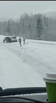 Поездка в Шерегеш закончилась жётским ДТП. Белый внедорожник полностью снес правый борт синей легковушке где-то под Чугунашем. (видео: Бардокин live)#ДТП
