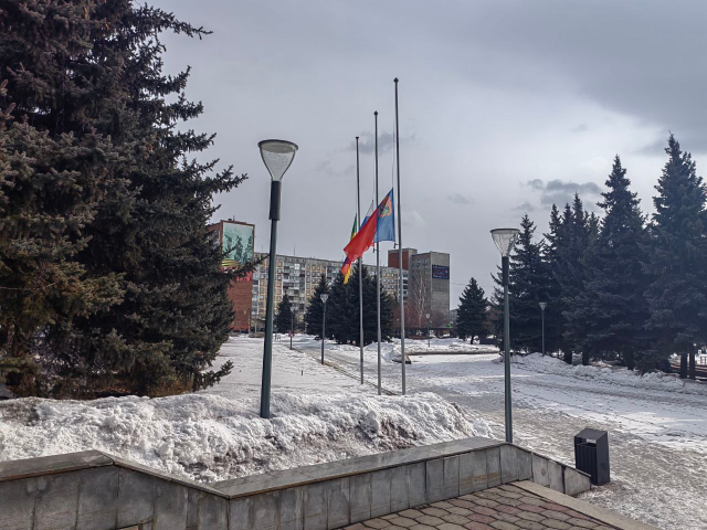 В Новокузнецке приспустили флаги из-за траура по погибшим в теракте в «Крокус Сити Холле» (источник: Сергей Кузнецов_НК) #происшествия