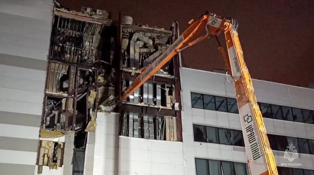 МЧС разбирает конструкции в «Крокусе» с помощью спецтехники. Известно, что здание планируется полностью восстановить. (Источник: МЧС России)#Теракт