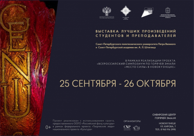 - кафедры художественной обработки металлов Санкт-Петербургской академии им. А. Л. Штиглица. Выставка пройдет в рамках реализации проекта «Всероссийский симпозиум по горячей эмали «Место силы» в Новокузнецке».