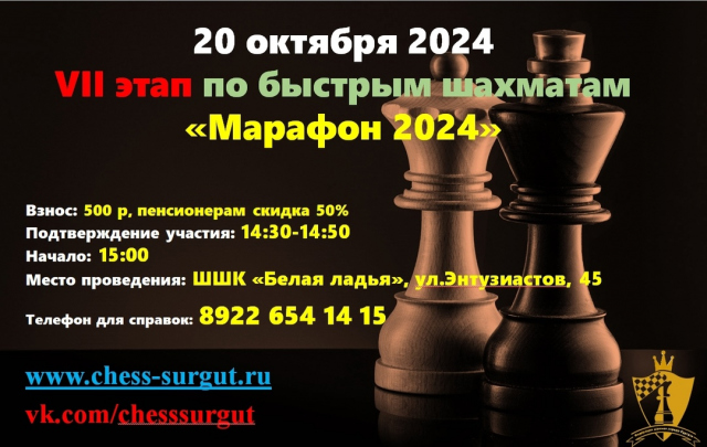 КОЛИЧЕСТВО МЕСТ ОГРАНИЧЕННО Не прошедшим онлайн-регистрацию участие не гарантируется К участию в VI этапе по быстрым шахматам "Марафон 2024" допускаются только шахматисты имеющие рейтинг ФШР не ниже 1100 или возраст участника старше 18 лет.