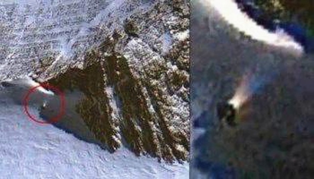 Снимки со спутника свидетельствуют о том, что нечто странное скрыто в недрах ледяной пустыни. На снимке видно, что этот гигантский фонарь излучает свет на склон пригорка, в котором вырезан некий проход.