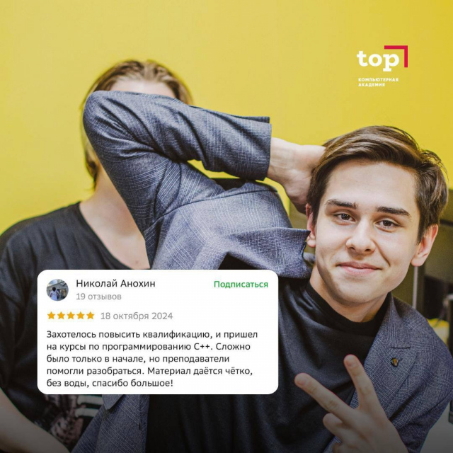 Ваши слова – лучшая награда для нас! Мы глубоко ценим каждый отзыв и будем стараться, чтобы качество наших услуг всегда оставалось на высоте. Спасибо, что вы с нами!#образование #itдлявзрослых #itдлядетей #it #itобразование #обучение #itтехнологии #topacademy #ittopcollege #ittoptravel #ittopenglish #ittopuniversity #topitschool #itкурсы #компьютернаяакадемия #академиятоп #отзывы
