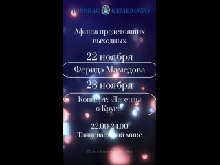 Приглашаем вас на незабываемые выходные в @hofbrau_kemerowo ⠀ 22 ноября — Live Vocal Феридэ Мамедова Погрузитесь в атмосферу волшебной музыки и насладитесь живым вокалом талантливой Феридэ Мамедовой! Танцевальный микс с диджеем и зажигательными гоу-гоу танцами! ⠀ 23 ноября — Концерт «Легенды о Круге» Лучшие песни Михаила Круга и авторские композиции Юрия Кузнецова-Таежного! Танцевальный микс с диджеем, который не даст вам усидеть на месте! ⠀ Подробности: 780-780 Video: Video by Hofbrau Kemerowo - Настоящий баварский ресторан