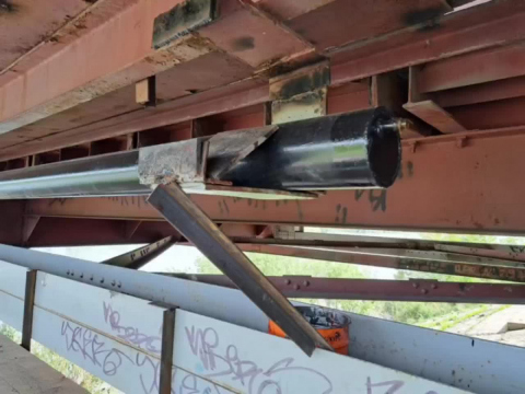 – Замену трубы под мостом: верхолазы демонтировали старую стальную трубу и одновременно прокладывали новую полиэтиленовую на подвесных конструкциях. Установлены новые катковые опоры и теплоизоляция для предотвращения перемерзания зимой.