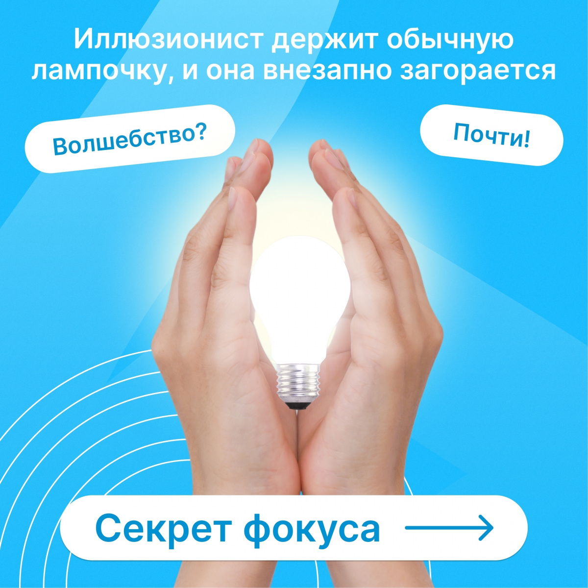 ⚡️Вы когда-нибудь видели, как лампочка загорается прямо в руке — без проводов и электричества?Кажется магией, но на самом деле это ловкость и немного хитрости. Готовы узнать секрет?