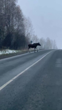 Сохатый неспеша и вежливо перешёл дорогу, после чего быстро скрылся в ближайшем лесу. Люди товарища, похоже, совсем не интересуют.