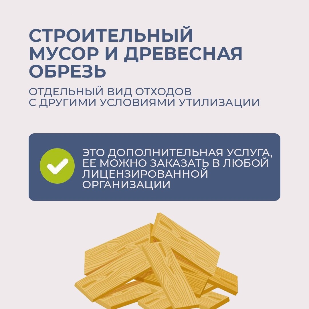 Строительный мусор и древесная обрезь должны вывозиться отдельно, эту услугу можно заказать у лицензированных компаний:
